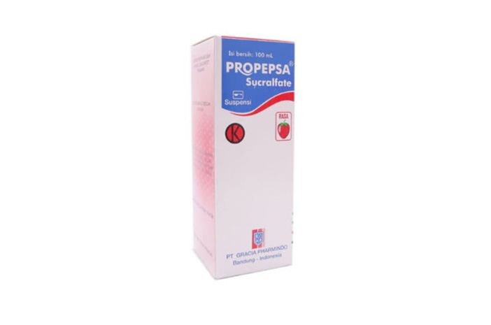 Selanjutnya adalah Propepsa Suspensi yang bekerja dengan cara menetralisir asam lambung berlebih serta melindungi lapisan dinding lambung dari iritasi.
