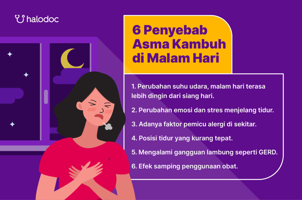 Asma di malam hari dikenal dengan sebutan asma nokturnal atau nighttime asthma. Lantas, apa penyebab penyakit asma kambuh saat malam hari?