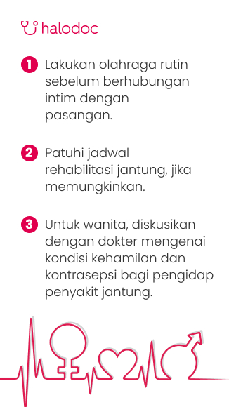 Itulah yang perlu diketahui tentang keamanan berhubungan intim setelah serangan jantung. Jika kamu memiliki banyak pertanyaan dan keraguan mengenai hal lain yang berkaitan, segera tanya dokter di aplikasi Halodoc. Yuk, download aplikasi Halodoc sekarang juga!