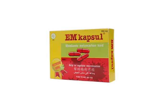 Obat pelancar haid yang terakhir ada Borobudur Em kapsul, yang mengandung kombinasi berbagai herbal alami seperti ekstrak adas manis, ekstrak temulawak, serta ekstrak kayu manis.