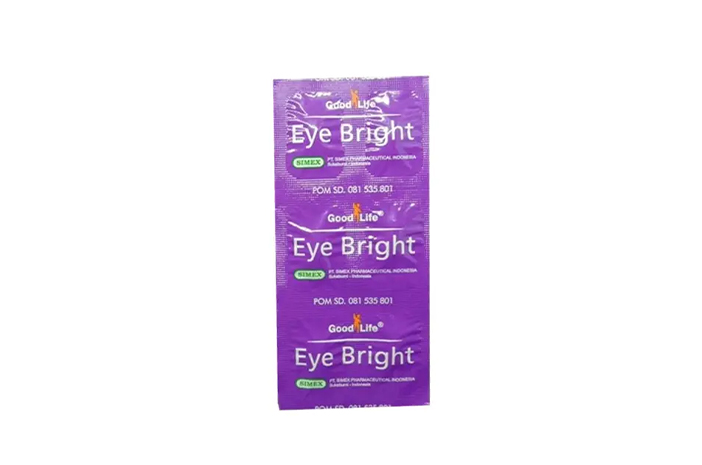 Good Life Eyebright 6 Kaplet merupakan vitamin mata yang tiap kapletnya mengandung bilberry dry extract 80 mg, retinol 1.600 IU, beta carotene 5 mg, vitamin E 40 mg, lutein 250 mcg, zeaxanthin 60 mcg, selenium 15 mcg, dan zinc 5 mg.