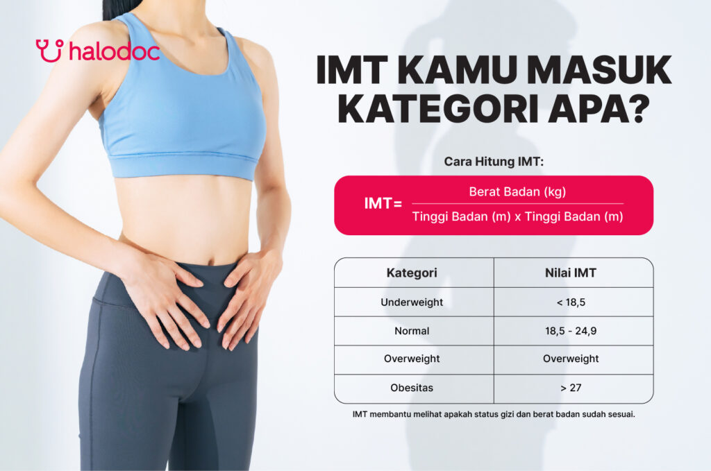 Jika nilai IMT termasuk dalam kategori kurang (underweight), berlebih (overweight), atau obesitas, segera konsultasikan dengan dokter spesialis gizi klinik di Halodoc.