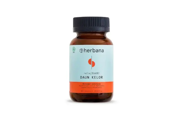 Rekomendasi produk dengan kandungan daun kelor yang pertama yaitu Herbana Daun Kelor 60 Kapsul.