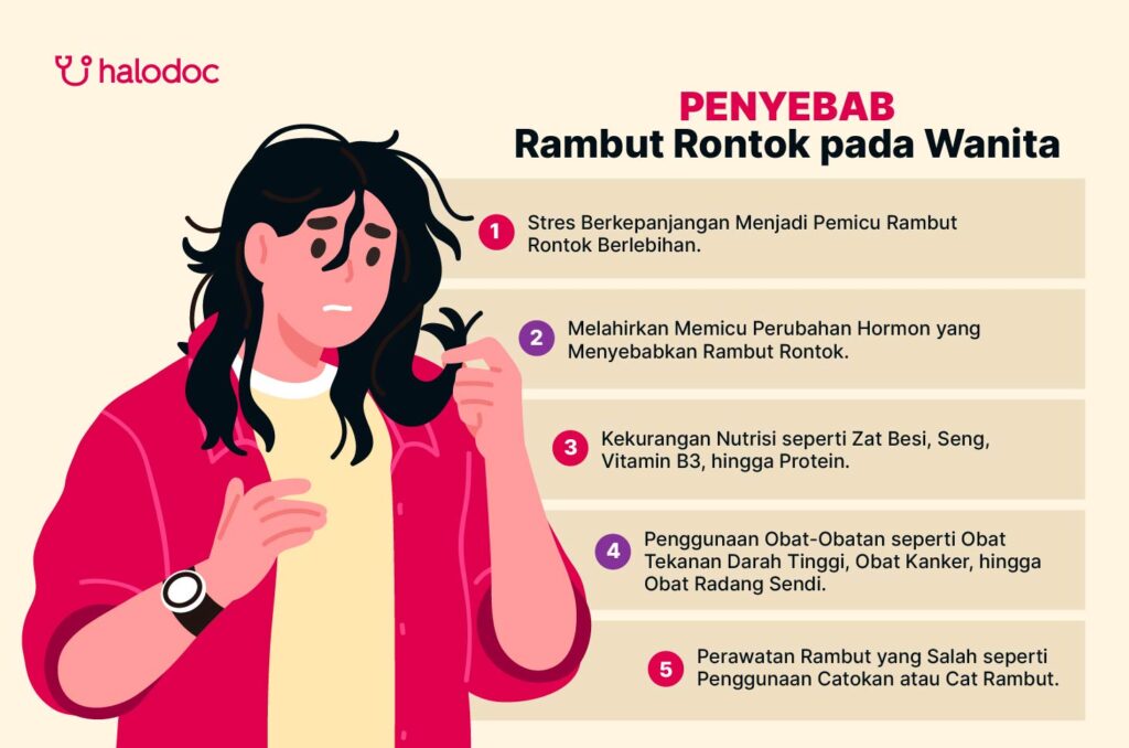 Dikutip dari beberapa sumber, ada sejumlah kondisi yang menyebabkan wanita mengalami rambut rontok, yaitu: