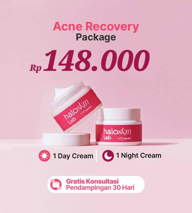 Dengan obat bekas jerawat Haloskin Lab Acne Recovery, kamu akan mendapat krim pagi dan krim malam untuk mengobati bekas jerawat yang efektif sampai tuntas. Selain perawatan jerawat, kamu juga dapat konsultasi berbagai permasalah kulit seperti komedo, bekas jerawat, dark-spot, kulit wajah berminyak, kulit kering, kulit bruntusan dan lain sebagainya.