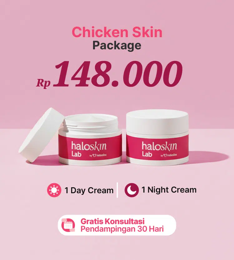 - Haloskin Chicken Skin Day Cream (20 g): Krim pagi ini dirancang untuk kulit dengan tekstur kasar dan bruntusan, membantu merawat dan melindungi kulit sepanjang hari.