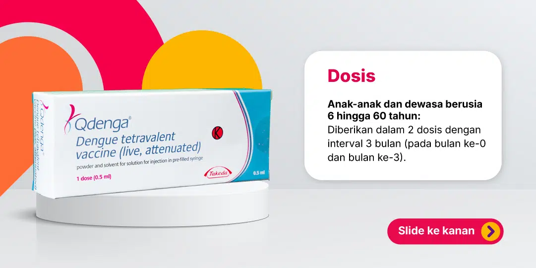 - Hindari vaksin ini jika anda alergi setelah menerima dosis pertama Qdenga, salah satu komponen aktif/tambahan pada vaksin; sedang demam tinggi atau infeksi akut berat,