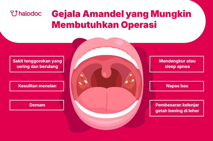 Beberapa gejala yang mungkin mengindikasikan perlunya operasi amandel meliputi: