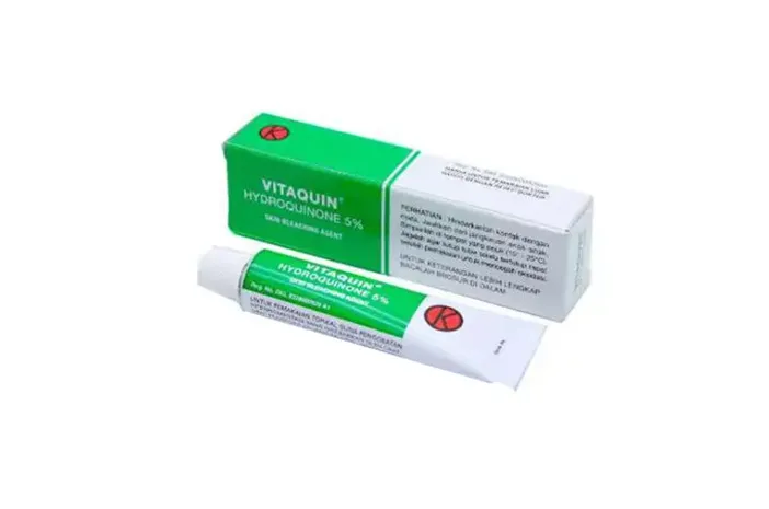 Vitaquin adalah obat berbentuk krim topikal yang digunakan untuk mengatasi hiperpigmentasi, yaitu kondisi ketika sebagian area kulit menjadi lebih gelap akibat produksi melanin berlebih.