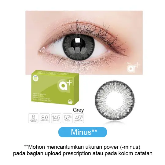 Softlense A+ NEW merupakan softlense dengan masa penggunaan selama 6 Bulan. Softlense ini memiliki 3 varian warna Hazel, Grey, dan Blue. Softlense ini memiliki diameter 14.5 mm dan kadar air 55% sehingga nyaman digunakan.
