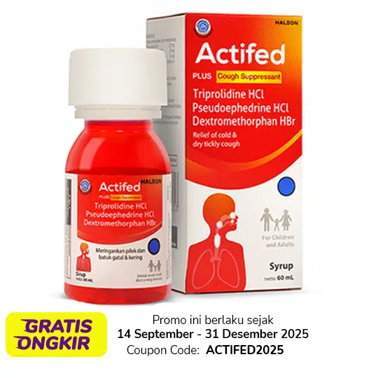 ACTIFED PLUS COUGH SUPPRESSANT (MERAH) adalah sirup obat simtomatik untuk batuk dan pilek, dengan tiga komponen aktif yang menargetkan gejala berbeda secara bersamaan.