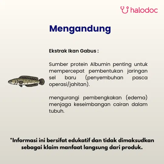 Tiap kapsul mengandung Channa Striata Ekstrak (Ikan Gabus) 480 mg