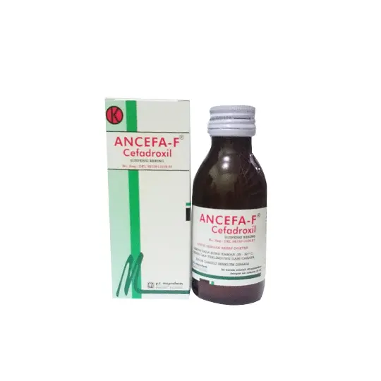 ANCEFA FORTE DRY SIRUP merupakan obat mengandung Cefadroxil. Cefadroxil merupakan antibiotika golongan Cefalosporin. Antibiotika ini bekerja dengan cara mengikat 1 atau lebih protein pengikat penisilin (PBPs) yang pada gilirannya menghalangi langkah transpeptidasi akhir sintesis peptidoglikan di dinding sel bakteri, sehingga menghambat biosintesis dinding sel dan menahan perakitan dinding sel yang mengakibatkan lisis bakteri. Antibiotik ini digunakan untuk mengatasi infeksi saluran pernafasan, saluran kemih dan kelamin serta infeksi kulit dan jaringan lunak. Dalam penggunaan obat ini harus SESUAI DENGAN PETUNJUK DOKTER. Pembelian obat ini memerlukan edukasi terkait penggunaan atau pengonsumsian obat yang tepat dan aman yang akan dikenakan biaya.