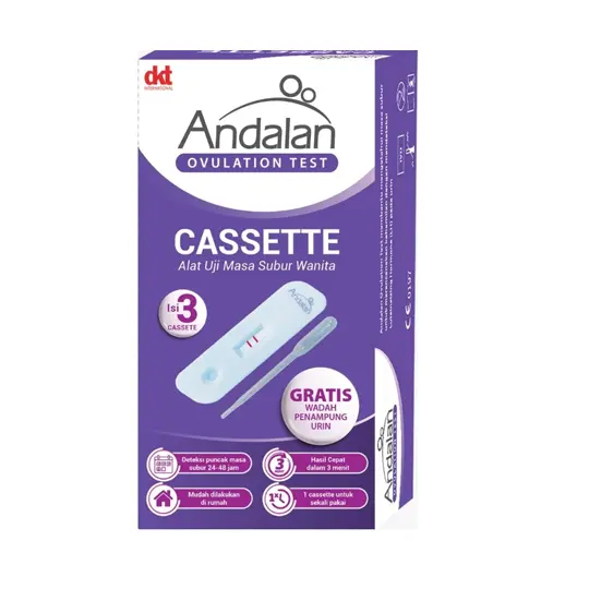Andalan Ovulation Test Kit merupakan Alat uji masa subur sekali pakai yang memiliki fungsi untuk mendeteksi masa subur pada wanita secara lebih cepat dan praktis. Andalan Ovulation Test memiliki tingkat keakuratan hingga 99,9%. Dengan bentuk cassette sekali pakai, Andalan Ovulation Test Kit mudah digunakan, dengan hasil mudah dibaca dalam waktu 1 menit.