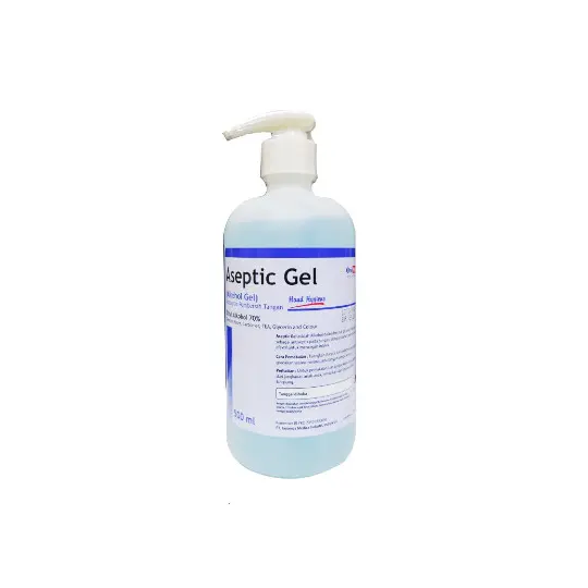 ASEPTIC GEL merupakan alkohol 70% dalam bentuk gel yang dapat digunakan sebagai antiseptik yang dapat membersihkan tangan dari kuman, seperti bakteri dan virus tanpa bilas. Antiseptik ini digunakan sebagai antiseptik yang efektif untuk membantu mencegah infeksi. Pada produk ini terdapat bahan tambahan berupa pelembut kulit, sehingga tangan tidak terasa kering dan kasar serta tidak lengket di tangan dengan aroma segar. Aseptic gel dapat digunakan di rumah sakit, salon, klinik, puskesmas, kantor, toko, pabrik, emergency room maupun di rumah tempat tinggal.