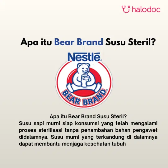 BEAR BRAND merupakan 100% susu sapi murni siap konsumsi yang telah mengalami proses sterilisasi tanpa penambahan bahan pengawet didalamnya. Susu murni yang terkandung di dalamnya dapat membantu menjaga kesehatan tubuh.