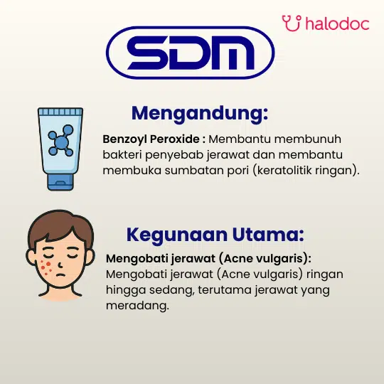 Benzoyl Peroxide adalah agen topikal lipofilik dengan efek keratolitik ringan dan aktivitas antimikroba terhadap Staphylococcus epidermidis serta Propionibacterium acnes. Mekanisme kerjanya melalui pelepasan oksigen radikal bebas yang mengoksidasi protein bakteri di folikel sebaceous, sehingga menurunkan jumlah bakteri anaerob dan iritasi akibat asam lemak bebas. Obat ini digunakan pada penatalaksanaan acne vulgaris, khususnya pada lesi dengan komponen inflamasi.