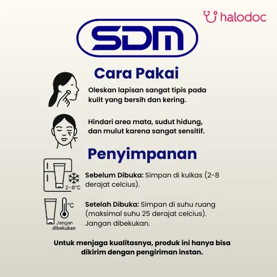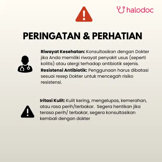 HARUS DENGAN RESEP DOKTER. Hanya untuk pemakaian luar. Dapat menyebabkan kulit kering atau iritasi pada awal penggunaan. Gunakan tabir surya karena kulit dapat menjadi lebih sensitif. Benzoyl Peroxide dapat memutihkan rambut atau kain berwarna.