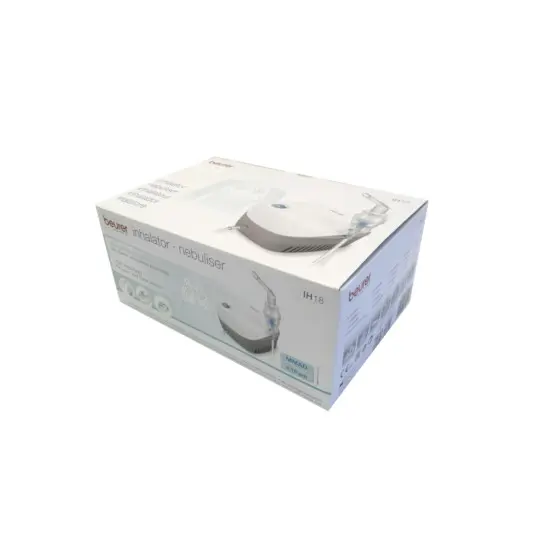 BEURER IH 18 COMPRESSOR NEBULIZER merupakan alat yang berfungsi untuk merawat saluran pernafasan atas dan bawah. Alat ini digunakan sebagai penyemprotan obat cair dengan menggunakan teknologi tekanan udara pada kondisi: masuk angin, asma, penyakit pernapasan, dll. Dalam box alat ini terdiri atas: