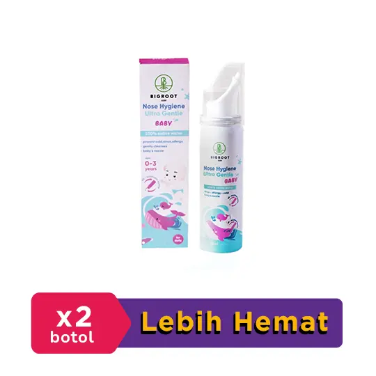 Bigroot Nose Hygiene Ultra Gentle Baby merupakan pembersih rongga hidung khusus untuk bayi berusia 0-3 tahun. Terbuat dari 100% saline water, dengan penyebaran larutan dalam tetesan yang sangat halus sehingga membuat aman dan nyaman pada bayi agar bayi bebas dari lendir dan melegakan pernapasan. Pernapasan yang baik memudahkan bayi untuk tidur lebih pulas dan nyaman pada saat makan ataupun minum susu.