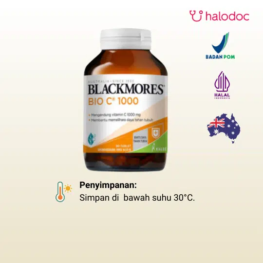 Blackmores Bio C 1000 mg 90 Tablet adalah suplemen kesehatan untuk membantu memelihara daya tahan tubuh dan berfungsi sebagai antioksidan.