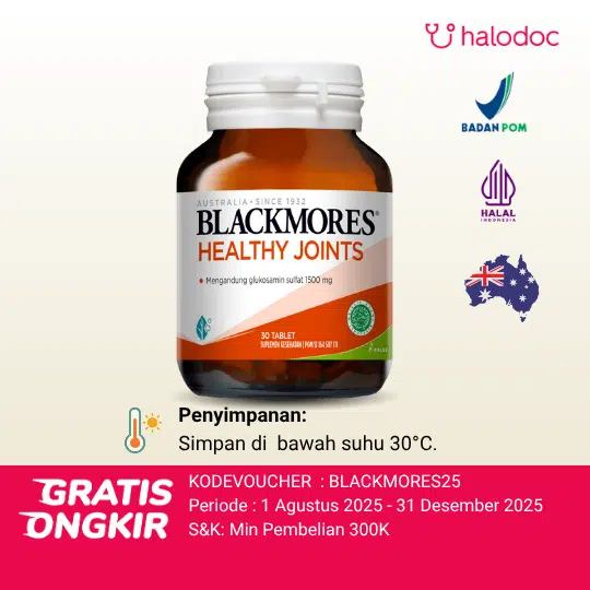 Blackmores Glucosamine Sulfate 1500 / Healthy Joints 30 Tablet adalah suplemen kesehatan untuk membantu memelihara kesehatan fungsi persendian.