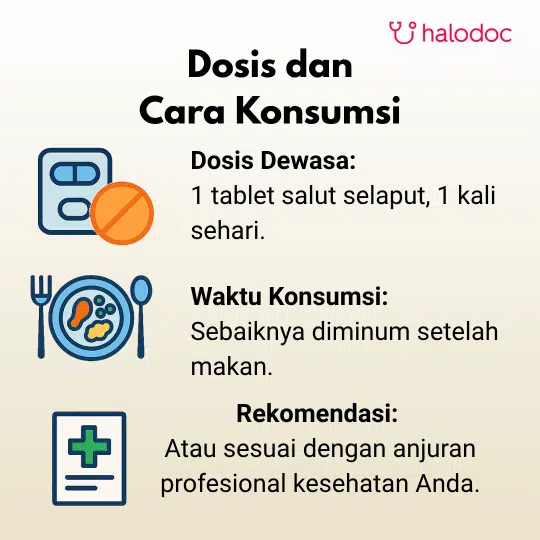 Dewasa: 1 kapsul sehari sesudah makan, atau sesuai petunjuk dokter.