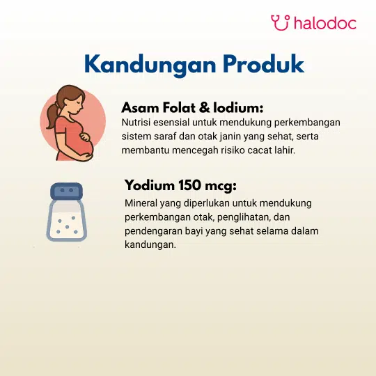 Membantu memenuhi kebutuhan Asam Folat dan Yodium harian. Penggunaannya ditujukan untuk wanita yang sedang merencanakan kehamilan, ibu hamil, dan ibu menyusui, guna membantu mendukung perkembangan janin yang sehat.