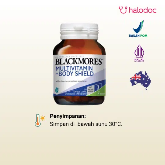 Blackmores Multivitamin + Body Shield 30 Tablet adalah suplemen kesehatan untuk membantu memelihara daya tahan tubuh dan melindungi sel dari kerusakan akibat radikal bebas (stres oksidatif).