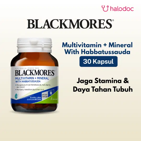 Blackmores Multivitamin + Mineral With Habbatussauda adalah suplemen kesehatan untuk membantu memelihara daya tahan tubuh dengan kombinasi vitamin, mineral, dan ekstrak herbal.