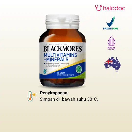 BLACKMORES MULTIVITAMINS + MINERALS adalah suplemen yang mengandung vitamin dan mineral yang penting untuk membantu memelihara kesehatan. Produk ini diformulasikan untuk memberikan dukungan nutrisi harian yang komprehensif.