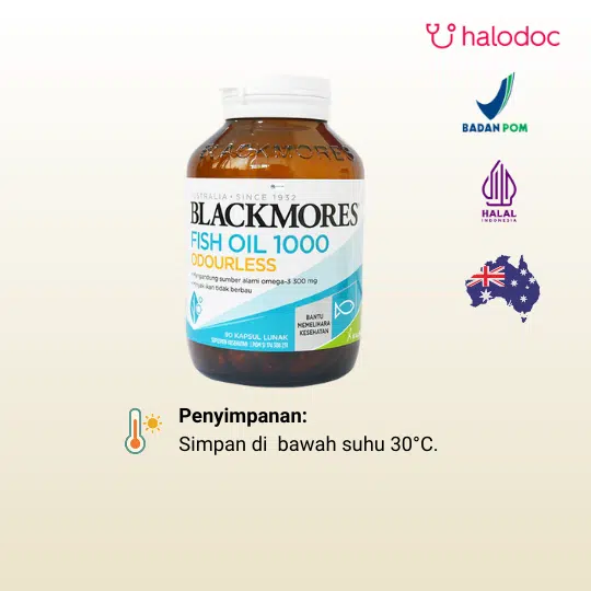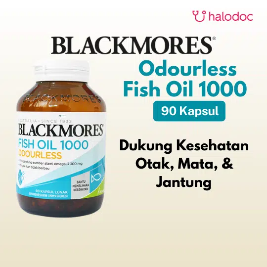 Blackmores Odourless Fish Oil 1000 90 Kapsul adalah suplemen kesehatan yang mengandung minyak ikan (sumber Omega-3: EPA dan DHA) untuk membantu memelihara kesehatan.