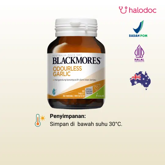 Blackmores Odourless Garlic 90 Tablet adalah suplemen kesehatan herbal untuk membantu memelihara kesehatan jantung dan membantu meringankan gejala tekanan darah tinggi yang ringan.