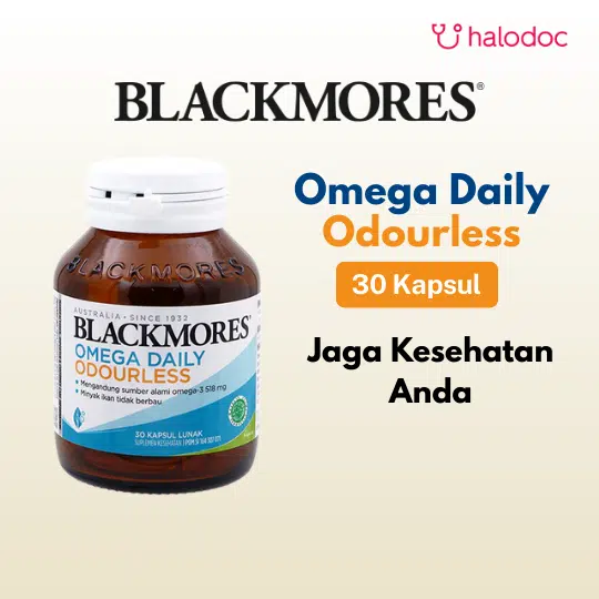 Blackmores Omega Daily Odourless 30 Kapsul Lunak adalah suplemen kesehatan minyak ikan yang diformulasikan untuk membantu memelihara kesehatan jantung dan mendukung fungsi otak.