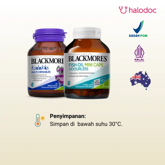 BPOM: SI233073281 ( Blackmores Fish Oil Mini Caps 90 Kapsul Lunak); BPOM: SI214540131( Blackmores Koalakids Multi Chewables 60 Tablet Kunyah)