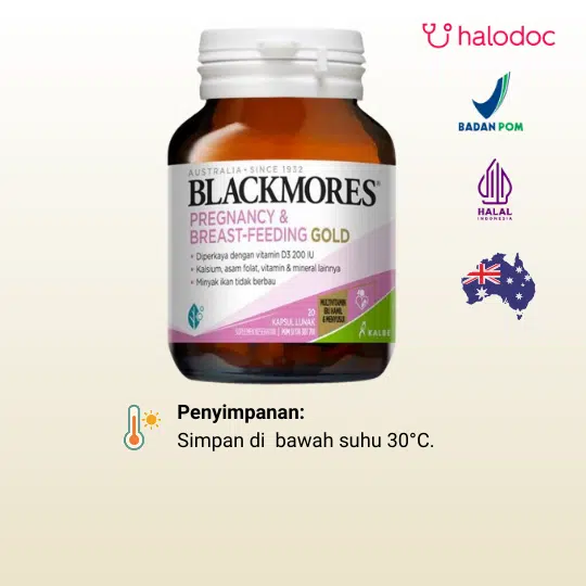Blackmores Pregnancy & Breast-Feeding Gold 20 Kapsul adalah suplemen multivitamin dan mineral yang diformulasikan khusus untuk memenuhi kebutuhan nutrisi yang meningkat pada ibu selama masa kehamilan dan menyusui.
