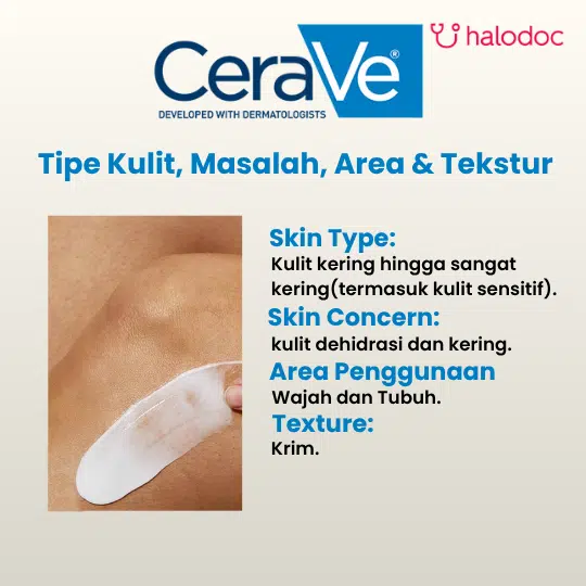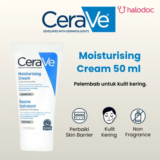 CERAVE DAILY MOISTURIZING CREAM 50 ML adalah krim pelembab yang dikembangkan bersama ahli dermatologi, dengan tekstur kaya yang memberikan hidrasi intens tanpa rasa lengket.