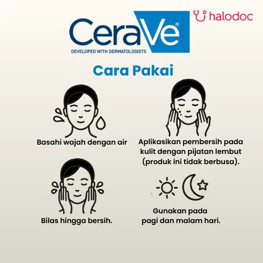 Tuangkan gel di telapak tangan yang sudah dibasahi, aplikasikan ke wajah dengan pijatan lembut, dan Bilas hingga bersih.