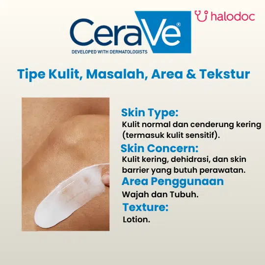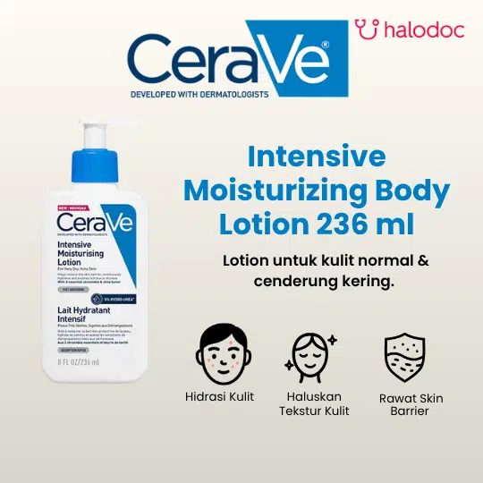 CeraVe Intensive Moisturizing Body Lotion 236 ml adalah pelembap harian yang dirancang untuk memberikan hidrasi jangka panjang dan membantu memulihkan fungsi lapisan pelindung kulit (skin barrier). Keunikan formula ini terletak pada Teknologi MVE (Multivesicular Emulsion), sebuah sistem penghantaran yang telah dipatenkan untuk melepaskan bahan-bahan pelembap secara bertahap selama 24 jam. Hal ini memastikan kulit tidak hanya terasa lembap sesaat setelah aplikasi, tetapi juga terjaga hidrasinya sepanjang hari. Diperkaya dengan kombinasi tiga Ceramide esensial yang identik dengan lipid alami kulit dan Asam Hialuronat (Hyaluronic Acid), lotion ini bekerja untuk memperbaiki skin barrier dan menarik kelembapan ke dalam kulit. Dengan tekstur yang ringan, tidak berminyak, dan cepat meresap, pelembap ini nyaman digunakan untuk wajah dan seluruh tubuh tanpa menyumbat pori-pori (non-comedogenic).