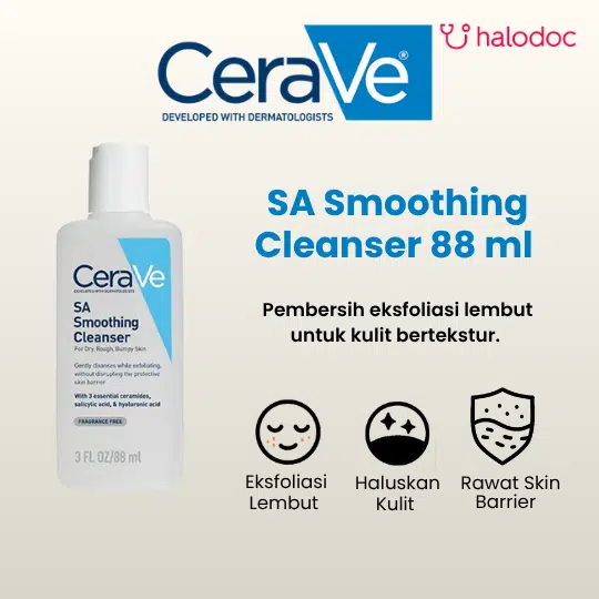 CERAVE SA SMOOTHING CLEANSER 88 ML adalah pembersih wajah bertekstur gel yang diformulasikan untuk kulit kasar dan bergelombang. Mengandung Salicylic Acid dan Ceramide yang bekerja sama untuk membersihkan dan menghaluskan kulit.
