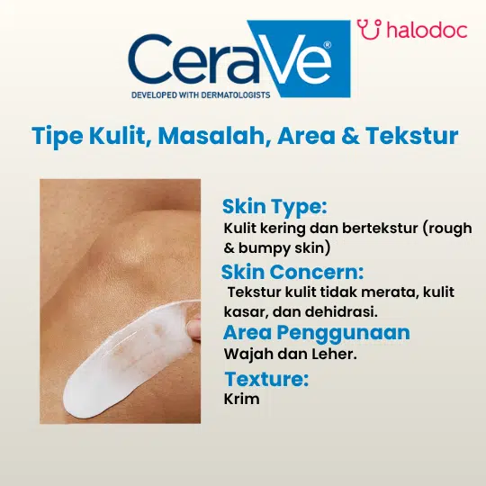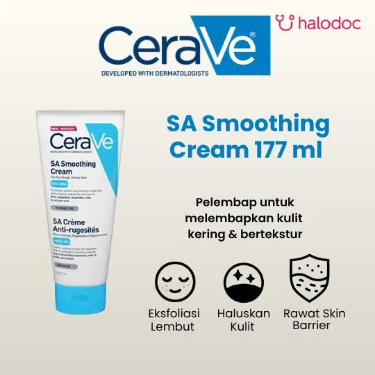 CeraVe SA Smoothing Cream adalah pelembap dengan fungsi eksfoliasi yang dirancang untuk membantu menghaluskan tekstur kulit yang kasar, kering, dan bergelombang (bumpy). Formula ini berfungsi untuk membantu mengatasi penumpukan sel kulit mati yang seringkali menjadi penyebab kulit terasa seperti amplas atau munculnya benjolan-benjolan kecil (kondisi yang umum dikenal sebagai Keratosis Pilaris atau "kulit ayam"). Krim ini bekerja dengan dua aksi utama, yaitu membantu mengangkat sel kulit mati secara lembut dengan kandungan Asam Salisilat (BHA) dan Asam Laktat (AHA) yang secara bersamaan memberikan hidrasi intensif untuk melembutkan kulit.
