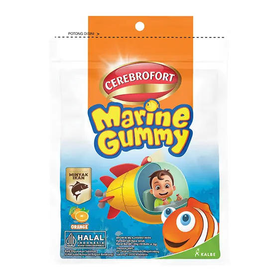 CEREBROFORT MARINE GUMMY ORANGE merupakan permen lunak jeli rasa jeruk dengan kandungan minyak ikan. Kandungan minyak ikan pada permen ini memberi manfaat untuk membantu memenuhi kebutuhan DHA dan EPA dalam perkembangan otak sehingga dapat menunjang proses tumbuh kembang anak.