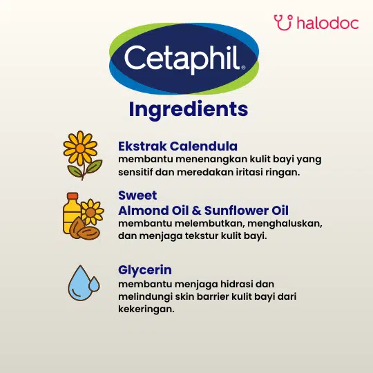 Membantu menenangkan, melembutkan kulit, dan menjaga tekstur kulit bayi.