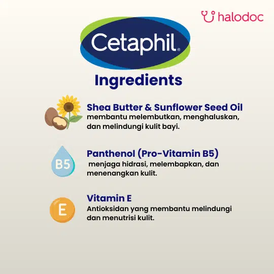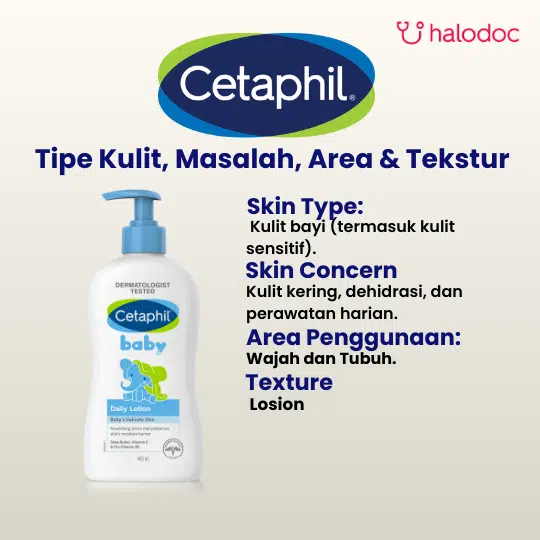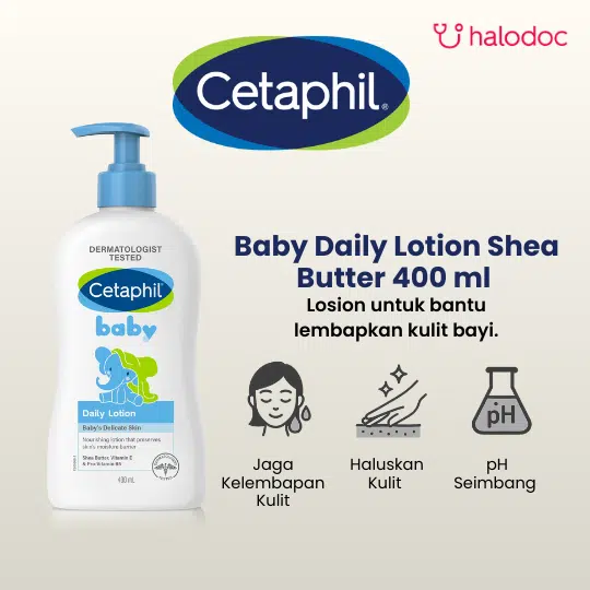 Cetaphil Baby Daily Lotion adalah losion kulit bayi yang sudah diuji secara dermatologis dapat membantu menghidrasi, menutrisi kulit, serta menenangkan kulit bayi. Cetaphil Baby Daily Lotion perawatan bayi teruji secara klinis untuk menjaga kelembapan kulit lembut sepanjang hari dan melindungi lapisan kulit bayi sensitif. Digunakan untuk wajah dan seluruh tubuh bayi. Hypoallergenic, pH seimbang, dan teruji secara dermatologis. Cetaphil Baby Daily Lotion mengandung sunflower seed oil yang kaya akan antioksidan dan shea butter yang membantu melembutkan tekstur kulit bayi.