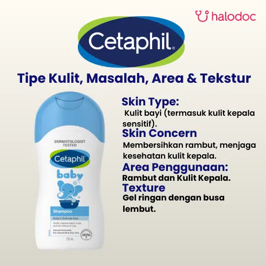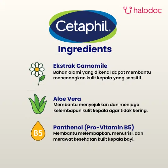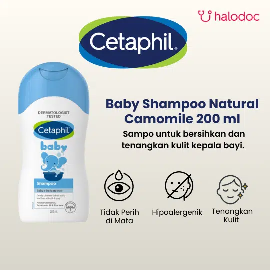 Cetaphil Baby Shampoo merupakan shampo perawatan bayi yang memiliki formula shampo bayi lembut untuk membersihkan sekaligus membantu menjaga kehalusan rambut dan kelembapan kulit kepala bayi yang lembut. Cetaphil Baby Shampoo mengandung aloe vera dan chamomile yang dapat membantu menenangkan kulit bayi.