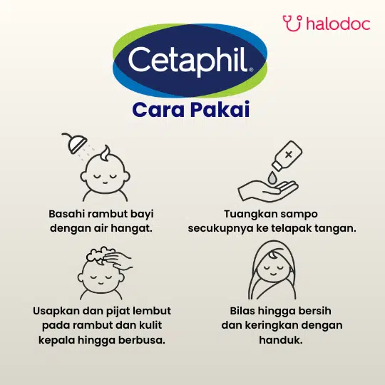 Tuang Cetaphil Baby Shampoo ke tangan atau lap mandi lalu usapkan ke rambut. Gosok lembut hingga berbusa, bilas, dan keringkan dengan handuk.