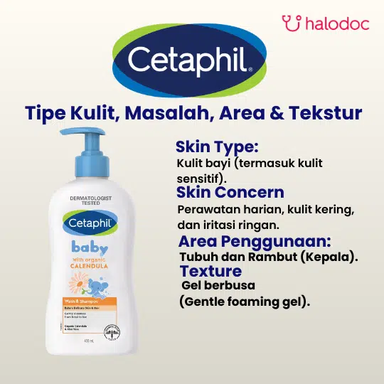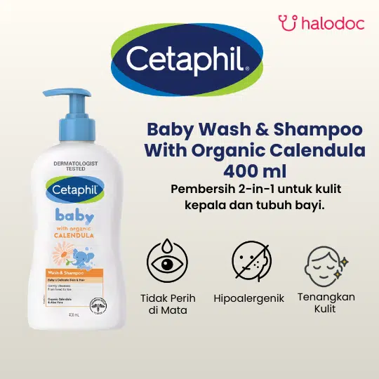 Cetaphil Baby Wash & Shampoo with Organic Calendula adalah sabun sekaligus shampo bayiyang membersihkan, membantu menjaga, serta memperbaiki tekstur kulit dan rambut bayi agar tetap halus dan lembut. Cetaphil Baby Wash & Shampoo with Organic Calendula mengandung calendula organik yang dapat membantu menenangkan kulit bayi yang kering.
