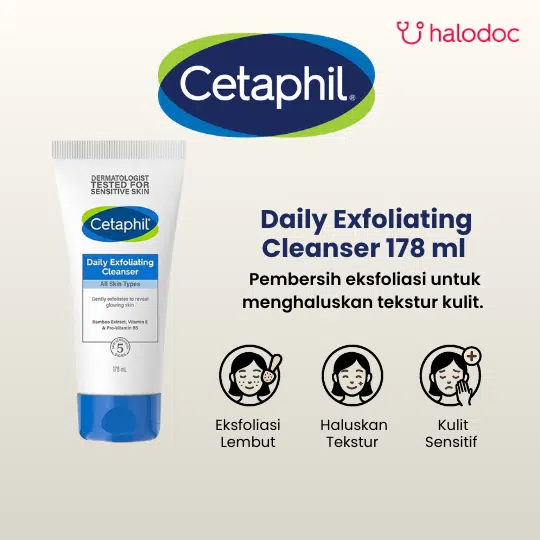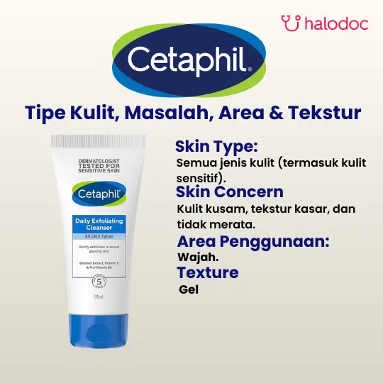 CETAPHIL DAILY EXFOLIATING CLEANSER merupakan produk pembersih wajah eksfoliasi dengan kandungan butiran scrub yang lembut sehingga dapat digunakan setiap hari untuk semua jenis kulit, termasuk kulit yang sensitif. Produk ini memberi manfaat membersihkan sisa kotoran, sel kulit mati, dan minyak berlebih sehingga kulit yang tampak kasar dan kusam menjadi tampak lembut, halus, dan bercahaya.