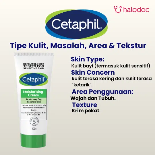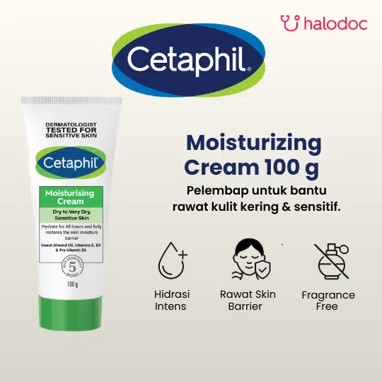 CETAPHIL MOISTURIZING CREAM merupakan pelembap dengan kombinasi formula dari Almond Oil yang dapat membantu melembapkan kulit sensitif dan yang sangat kering. Produk ini digunakan untuk membantu menjaga kelembaban kulit, membantu melembutkan dan memperbaiki tekstur kulit, sehingga kulit menjadi halus, lembut, dan terlindungi.
