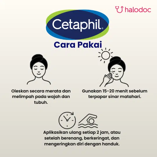 Oleskan sekitar 20 menit sebelum terpapar sinar matahari. Oleskan secara merata dan biarkan meresap ke dalam kulit. Hindari kontak dengan mata. Oleskan beberapa kali untuk menjaga perlindungan dari sinar matahari, terutama setelah berenang.
